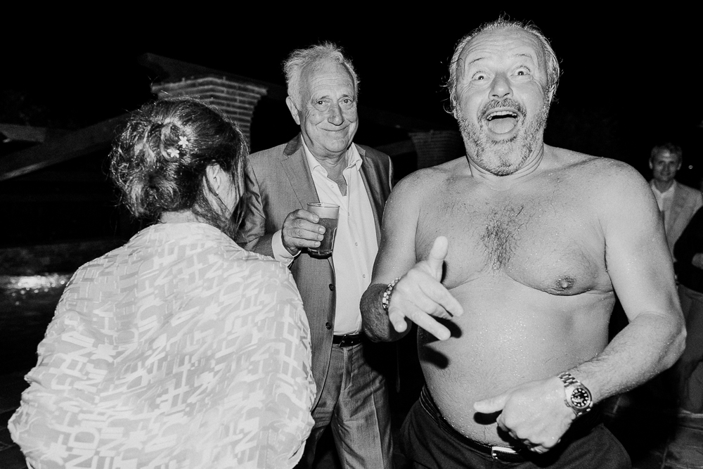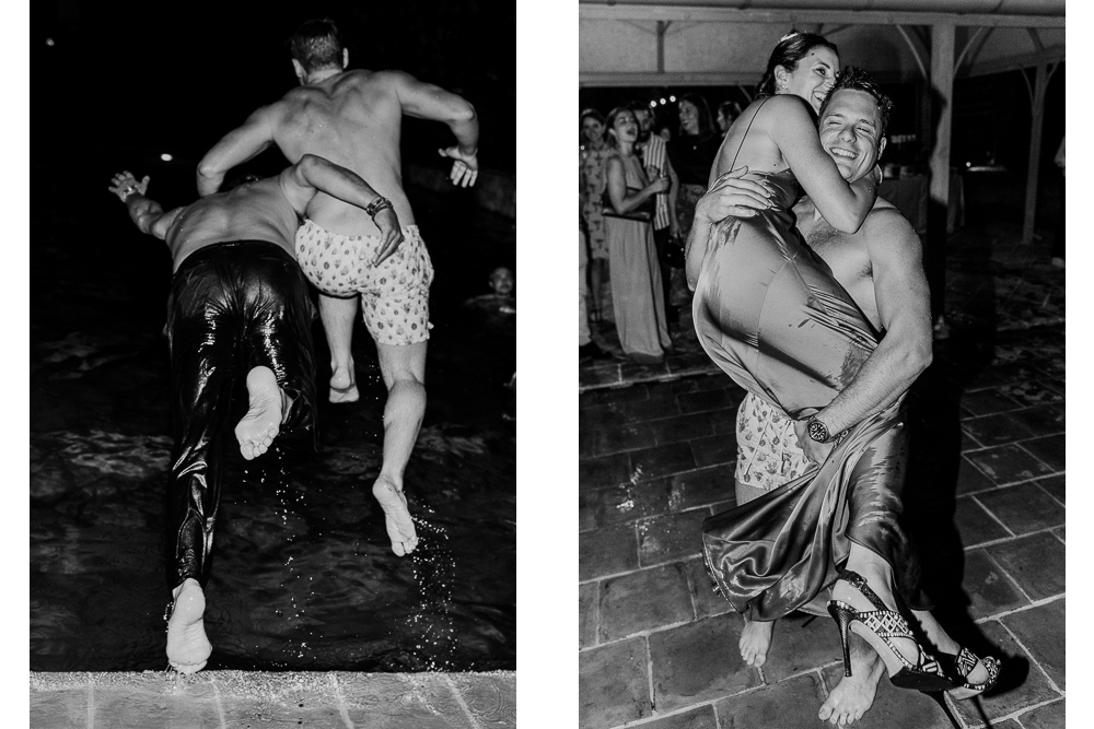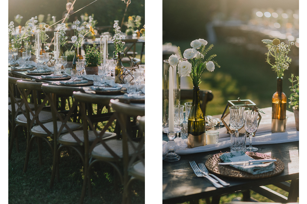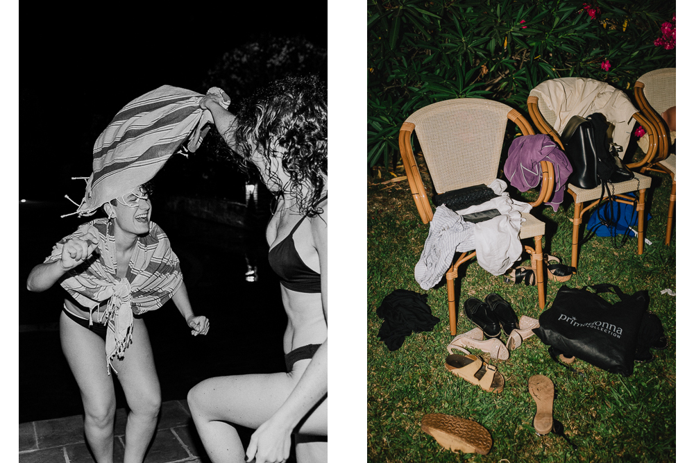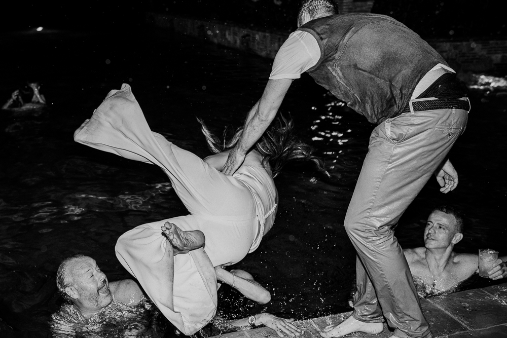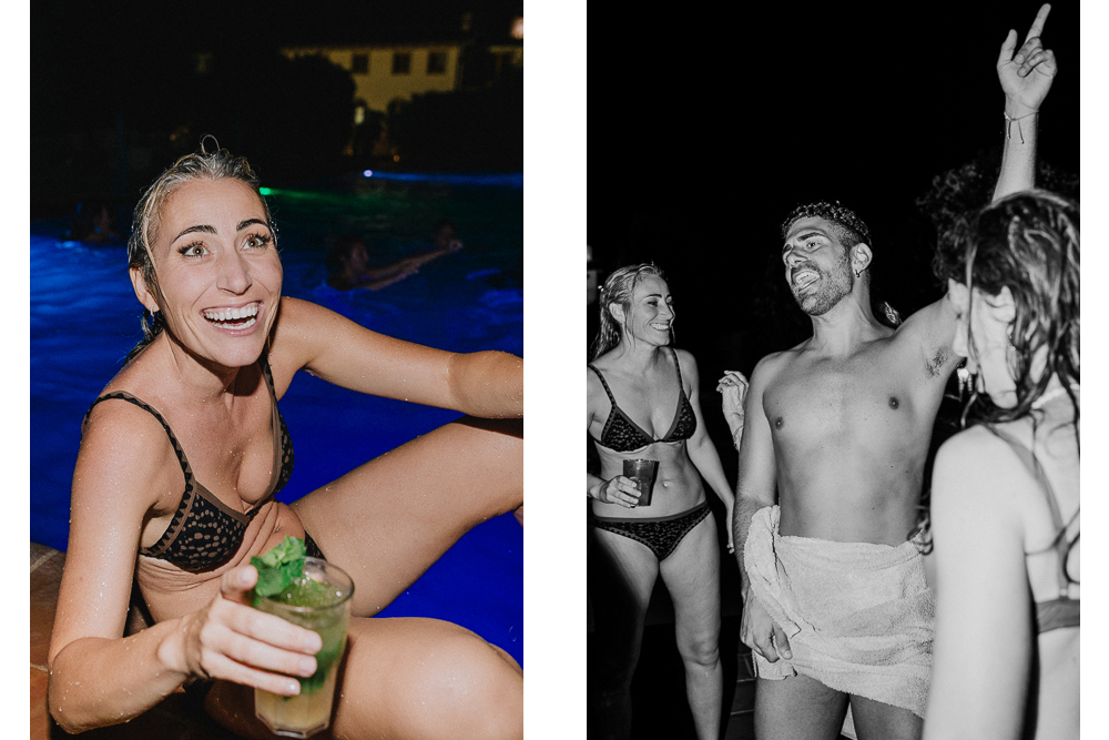 Il ricevimento in giardino si è svolto tra romanticismo e intimità, culminando in una scintillante festa in piscina che ha illuminato la notte toscana.